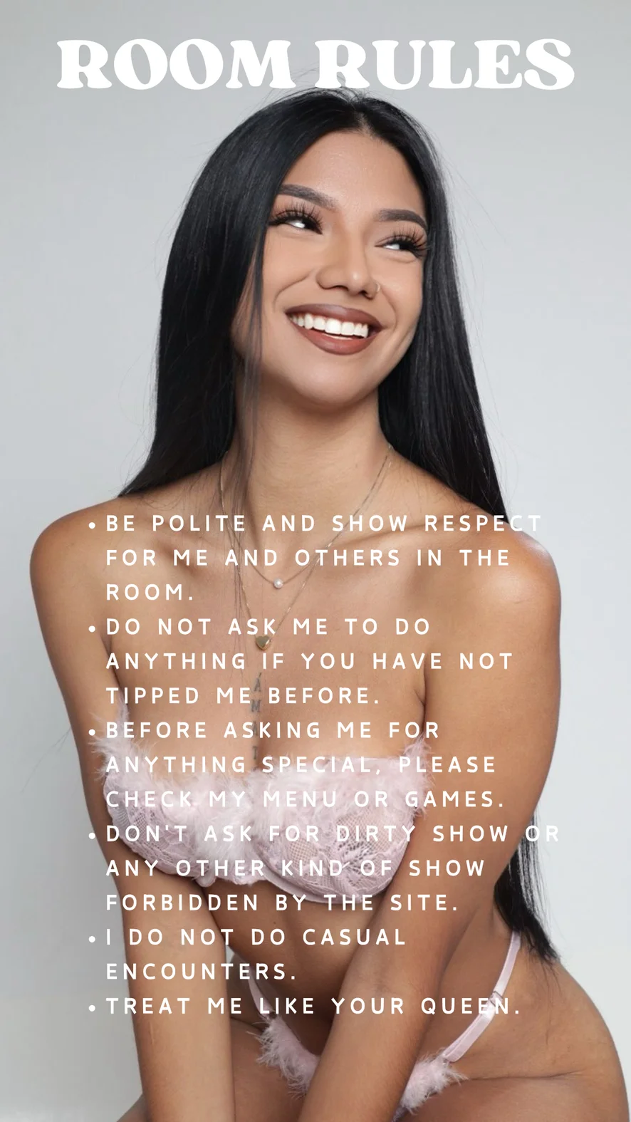 Palmadas, Ahegao, Dança Erótica, Exibicionismo, Topless, Pata de Camelo, Canzana, Fingering, Dildo ou Vibrador, Striptease, Minete, Felácio, Foda de pés, Anal, Ejaculação, Creampie, Do Cu para a Boca, Conversa porca, Sentar na Cara, Fumar, Instruções para Bater Uma, Brinquedos Anais, Brinquedos Sexuais
